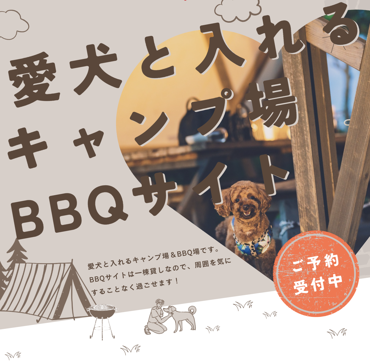 キャンプサイト・BBQ場どちらもわんちゃん同伴OK!