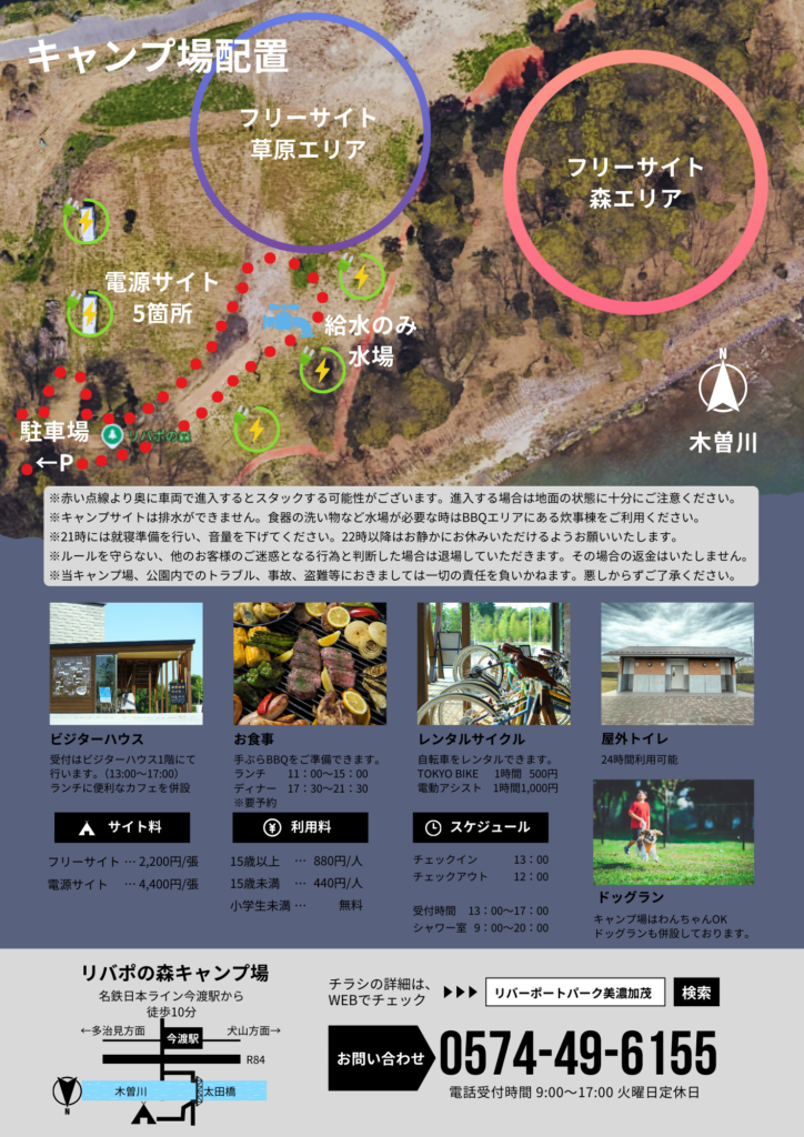リバポの森キャンプ場は、木曽川沿いに広がる自然あふれるフィールドです。